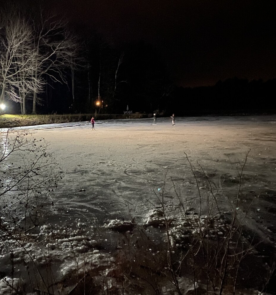 In Topsham, another ice rink is available for public use on the corner of Lovers Lane and Bay Park Road, with lights over the rink to shine at night.