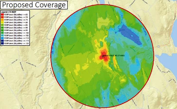 Only about 30% of Otisfield residents currently have reliable cellphone reception. According to Verizon Design Engineer Rafael Feliciano-Rivera, coverage would improve to an acceptable range in most parts of the town, save an area of Bolsters Mills which is surrounded by two mountains.