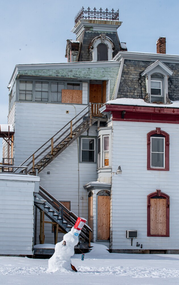 A beer-themed snowman gets a little sideways Tuesday morning in a P.U.G., or Pop-Up Garden, on Bartlett Street between Pine and Walnut streets in Lewiston. Russ Dillingham/Sun Journal Buy this PhotoA beer-themed snowman gets a little sideways Tuesday morning in a P.U.G., or Pop-Up Garden, on Bartlett Street between Pine and Walnut streets in Lewiston. Russ Dillingham/Sun Journal Buy this PhotoAfter spending a good chunk of Tuesday morning chopping ice to unplug a giant puddle in front of his home on College Street in Lewiston, Arthur Hughes struggles with a big pile of waterlogged, heavy snow a plow left halfway into the street as it swung wide to avoid parked cars on both sides of his driveway. Russ Dillingham/Sun Journal Buy this PhotoArthur Hughes struggled with a big pile of waterlogged, heavy snow Tuesday that was left halfway into the street by a plow truck swinging wide to avoid parked cars on both sides of his driveway. He wanted to remove as much as possible before it froze overnight. Russ Dillingham/Sun Journal Buy this PhotoCheryl MacDonald squints and grits her teeth Monday afternoon as a cold wind blows snow into her face on Horton Street in Lewiston as she returns home from the laundromat. “After living in Maine long enough, you get used to this,” she said. “It’s actually very pretty, but I can’t wait for warmer weather.” Russ Dillingham/Sun Journal Buy this Photo
