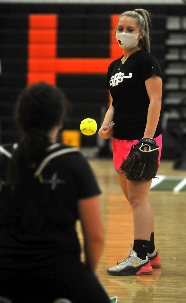 “An actual (softball) game, I’d say two years ago. But last summer I went outside and practiced a little bit,” Poli said. “I’m so excited, because this is the first time in my high school career we’ve been able to go outside for pitcher-catcher… I pitched my sophomore year, so I probably have the most experience out of everyone in here. I think we’re going to be pretty good this year. We have a lot of new faces, but sometimes new faces are good.”