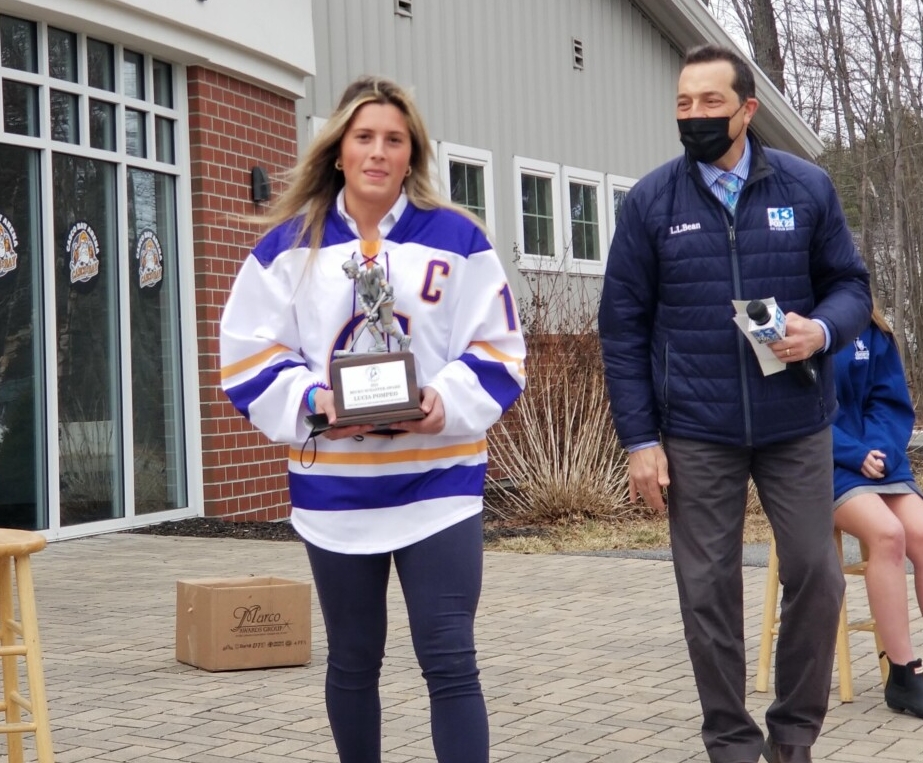 “It’s a great accomplishment,” said Pompeo at a small outdoor ceremony for the players’ families at Casco Bay Arena in Falmouth. “I couldn’t have done it without my family, friends and especially (Cheverus) Coach (Scott) Rousseau. It’s very exciting and I’m very thankful.”