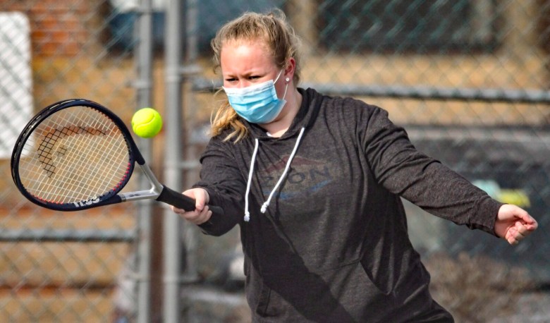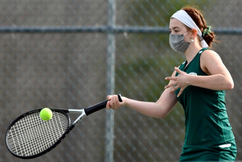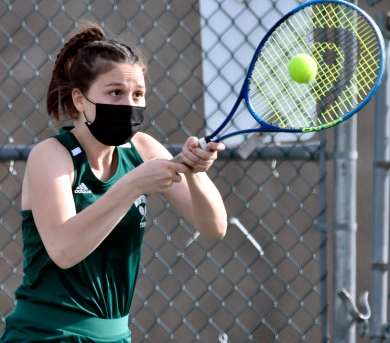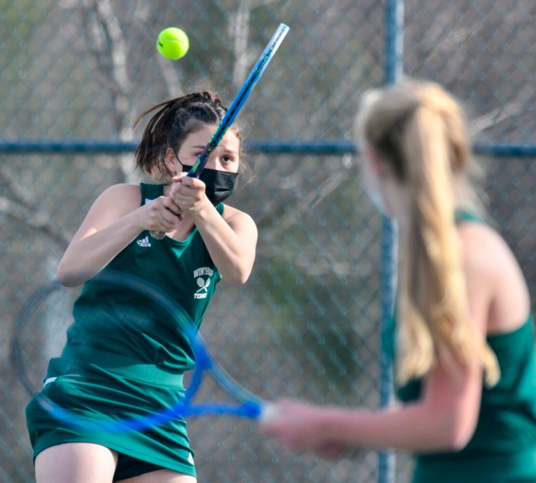 “It’s really nice. I’m so glad we got to have a real season this year, because the basketball and the field hockey seasons were modified,” said Winthrop’s Hannah Duley, who earned a 6-0, 6-0 win at No. 2 singles. “Besides the masks and everything, the rules are fairly simple. It’s great. I think it’s really normal. I feel like it’s the most normal we’re going to get for a while.”