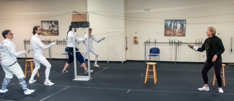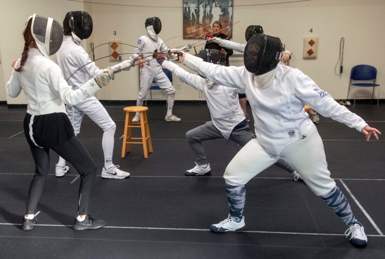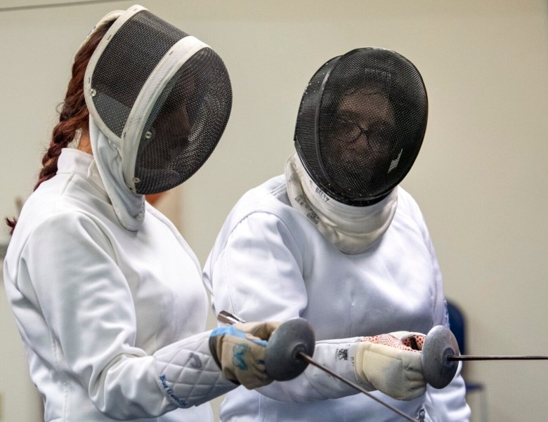 “It’s a workout,” Melcher said. “Just coming here two to three times a week is aerobic, and that’s great. The other part is, there’s so many parts to learn. So many times I’m thinking, ‘Oh my god, how do I get these parts to fit?’ Because there’s timing. There’s strategies you’ve got to think about in fencing somebody else. It’s that mental part that’s so challenging, along with that physical part.”