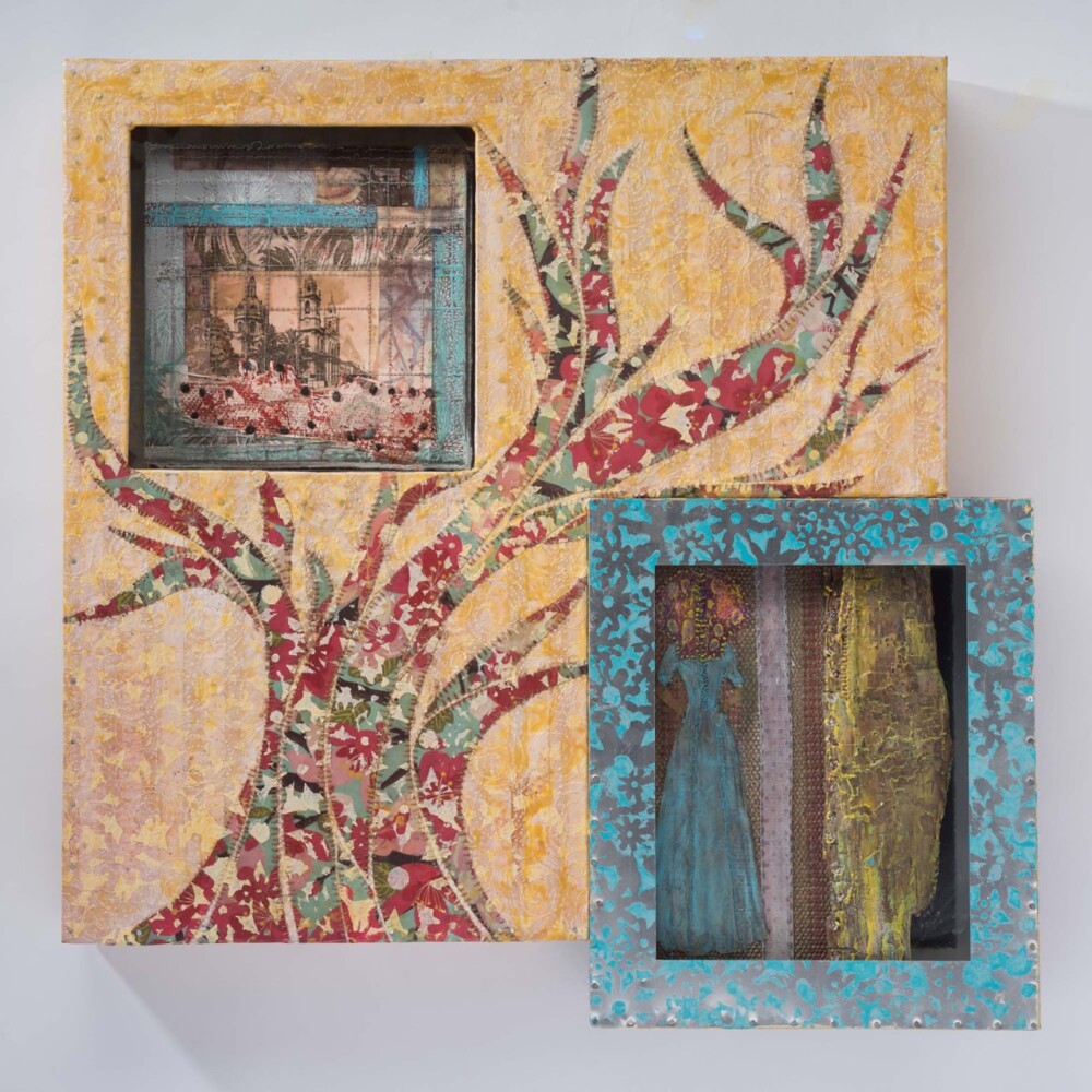 “Lost and Found,” an upcoming exhibit at the Maine Art Gallery on Warren Street in Wiscasset, is to feature three Maine artists who create mixed media narratives with materials from traditional art supplies to textiles, papers, and found objects.