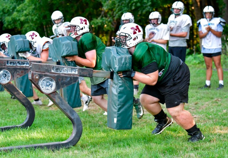 He’s the pillar on the Winthrop/Monmouth/Hall-Dale lines, but Umberhind has another role on the team. He’s the one keeping the mood light, and breaking up the stress that in football can pile up. Whether it’s due to his wearing a too-tight shirt to practice or poking fun at someone, everyone comes away with an Umberhind story.