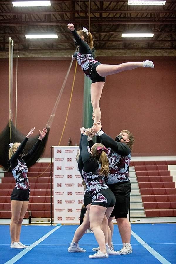 Being his own man brought him to an unusual winter sport option. Formerly a wrestler, Umberhind, who was looking for a way to keep his conditioning up, decided to give cheering with Monmouth Academy a try.