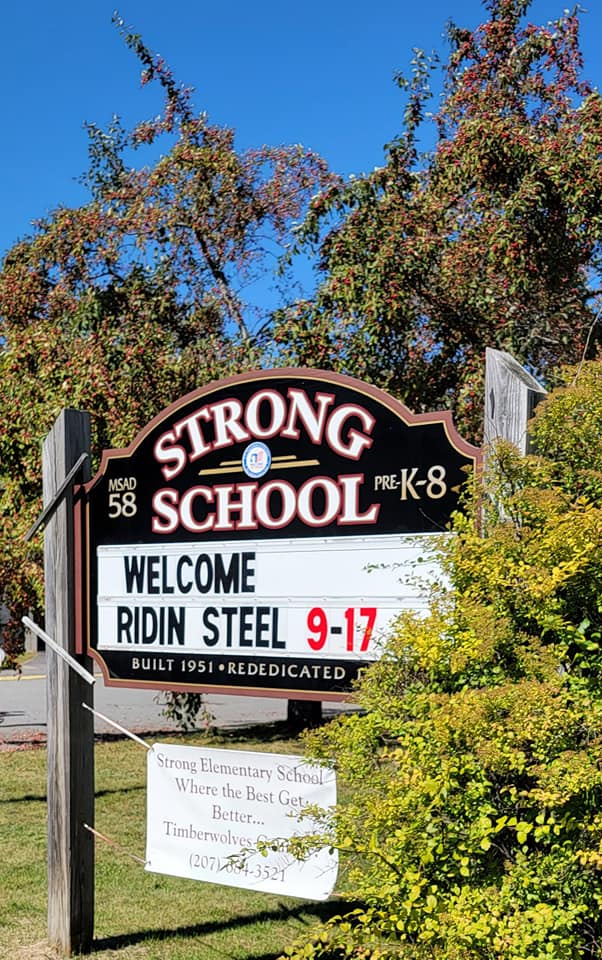 At Strong Elementary, the entire school gathered outside to cheer and welcome Marois with a large group of bikers riding up to the school in formation.