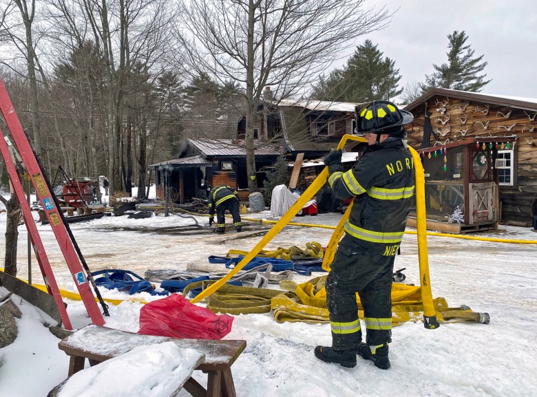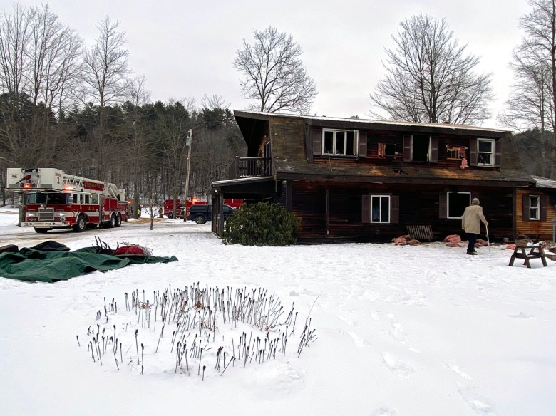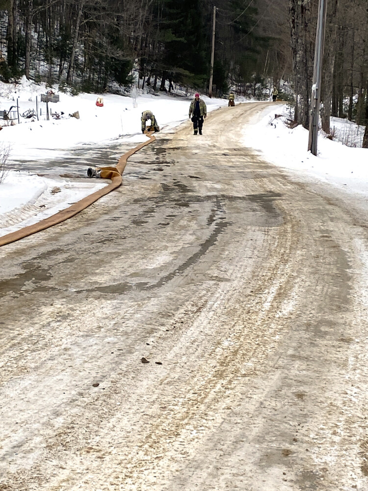 Firefighters laid hoses along the long, icy driveway drawing from tanker trucks stationed on Paris Hill Road. The flames were finally knocked down about 1 p.m.