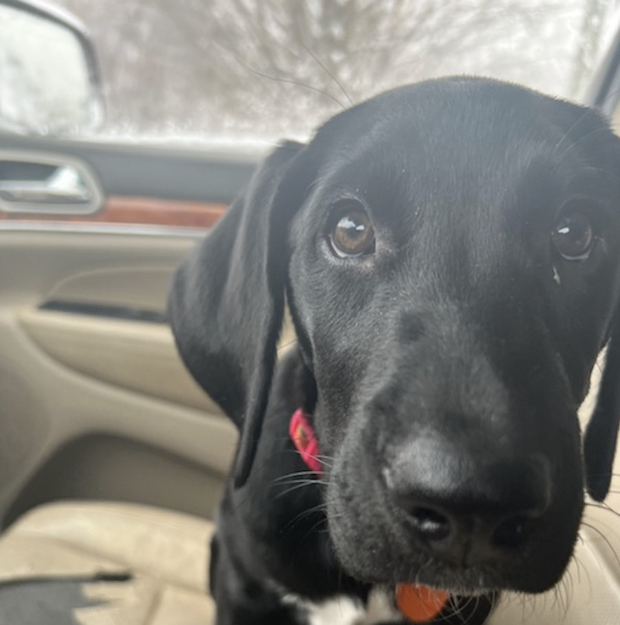 Layla is a black lab-hound mix and weighs about 30 pounds. She is wearing a collar with a name tag and rabies tags. The dog is shy and if members of the public spot Layla, Kenkel said it is best not to chase her and to speak quietly.