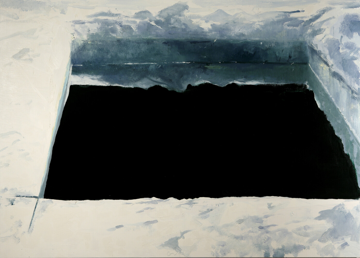 “Ice Cut (Arctic Sky)” is one of a series of paintings Eric Aho has made after cutting holes in ice with antique tools. Photo by Rachel Portesi courtesy of the artist and DC Moore Gallery