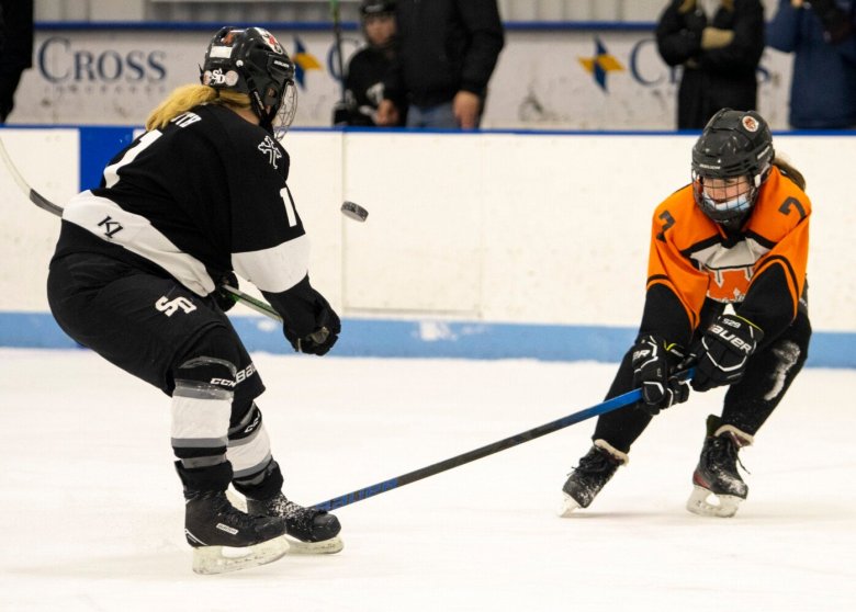 The Black Tigers (7-8-0) landed the first blow of the game late in the first periodwhen Jordin Williams knocked a shot past Abrianna White for a 1-0 lead. Duffy scored her first goal of the night just 22 seconds later, with an assist from Emma Roy, to tie the game 1-1 going into the first intermission.