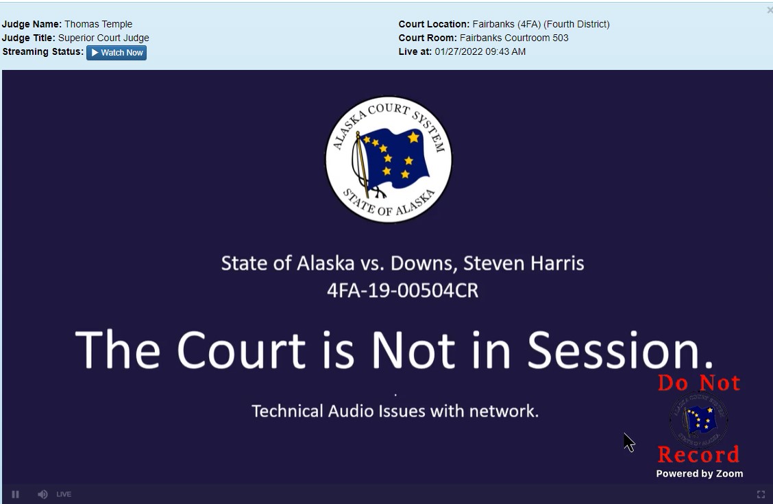 However, the next day — a Thursday — when Sun Journal Staff Writer Christopher Williams logged on to the livestream at 8:30 a.m. Alaska Standard Time, the screen read “offline.” He reached out to the court clerk multiple times, and at 9:19 a.m. received a message that the trial had been postponed until the following Tuesday because of a COVID exposure.