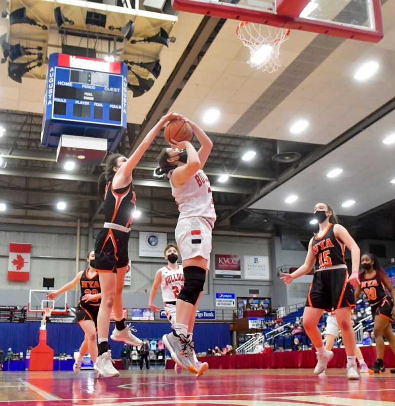 Sarah English scored 19 points for NYA, while Angel Huntsman added 12 when not dazzling the Civic Center crowd with her pinpoint running passes from the point, including a couple no-look dishes that resulted in points.
