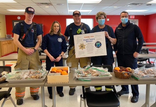 Members of the Poland Huddle, a local group that works to positively impact the community, recently presented treats to the on-duty fire rescue workers in Poland.