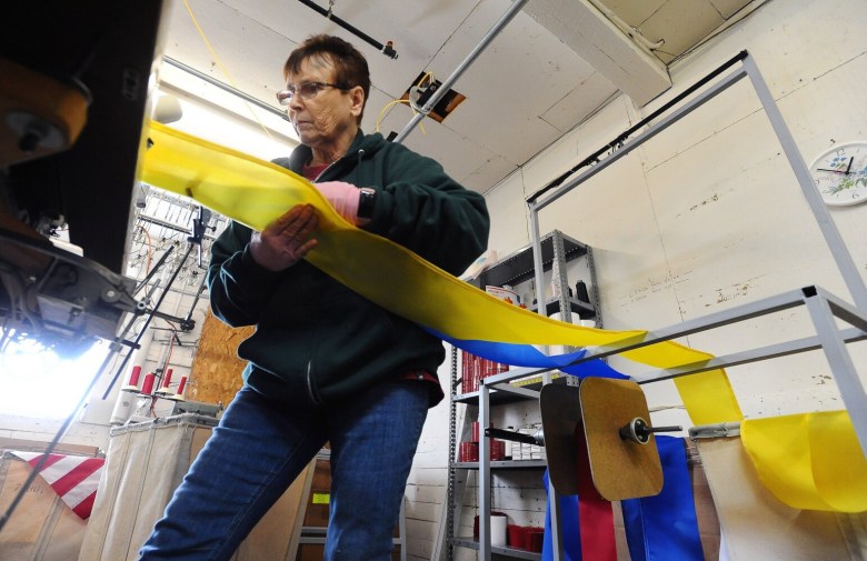 Workers at the manufacturing facility now have shifted focus and are making Ukrainian flags as fast as the orders come in. Orders from around the country are expected to top 1,000 by the end of the week, Swain said Tuesday.