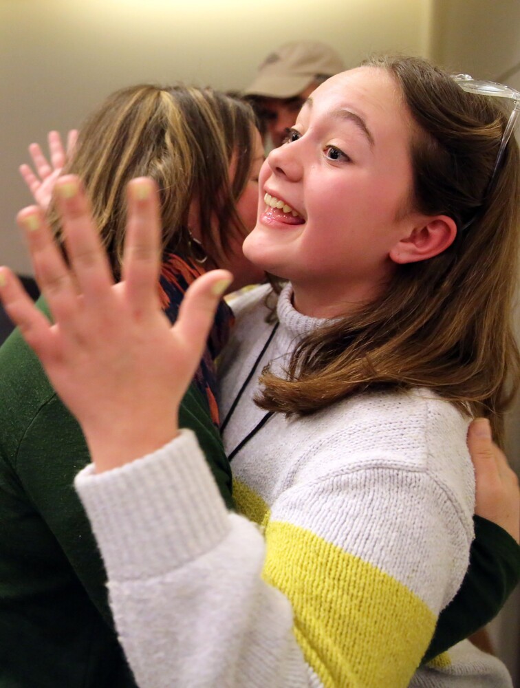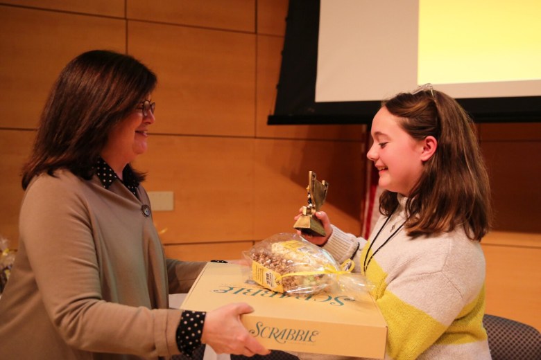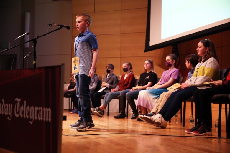 Khloe Roy, a sixth-grader from Madawaska Middle School, came in second place after incorrectly spelling “millionaire” in the 10th round. Adam Majewski, an eighth-grader from Yarmouth, and Dominique Giroux-Pare, an eighth-grader from Winslow, tied for third place. Majewski and Giroux-Pare were eliminated in the ninth round, after misspelling “navigator” and “opinionated,” respectively.