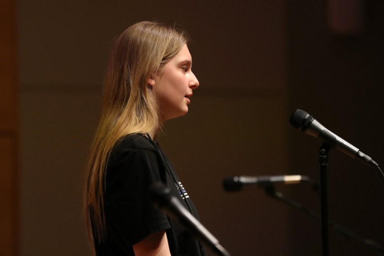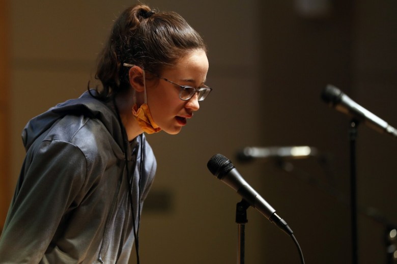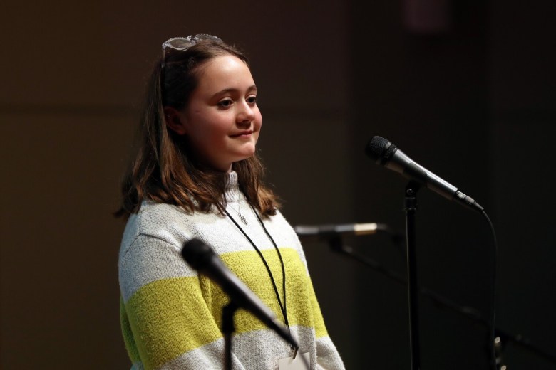Rice took on her words Saturday with confidence, barely taking time to consider her answer before speaking clearly into the microphone and spelling “postpone,” “contraction,” “spectral,” “weaponry” and others perfectly.
