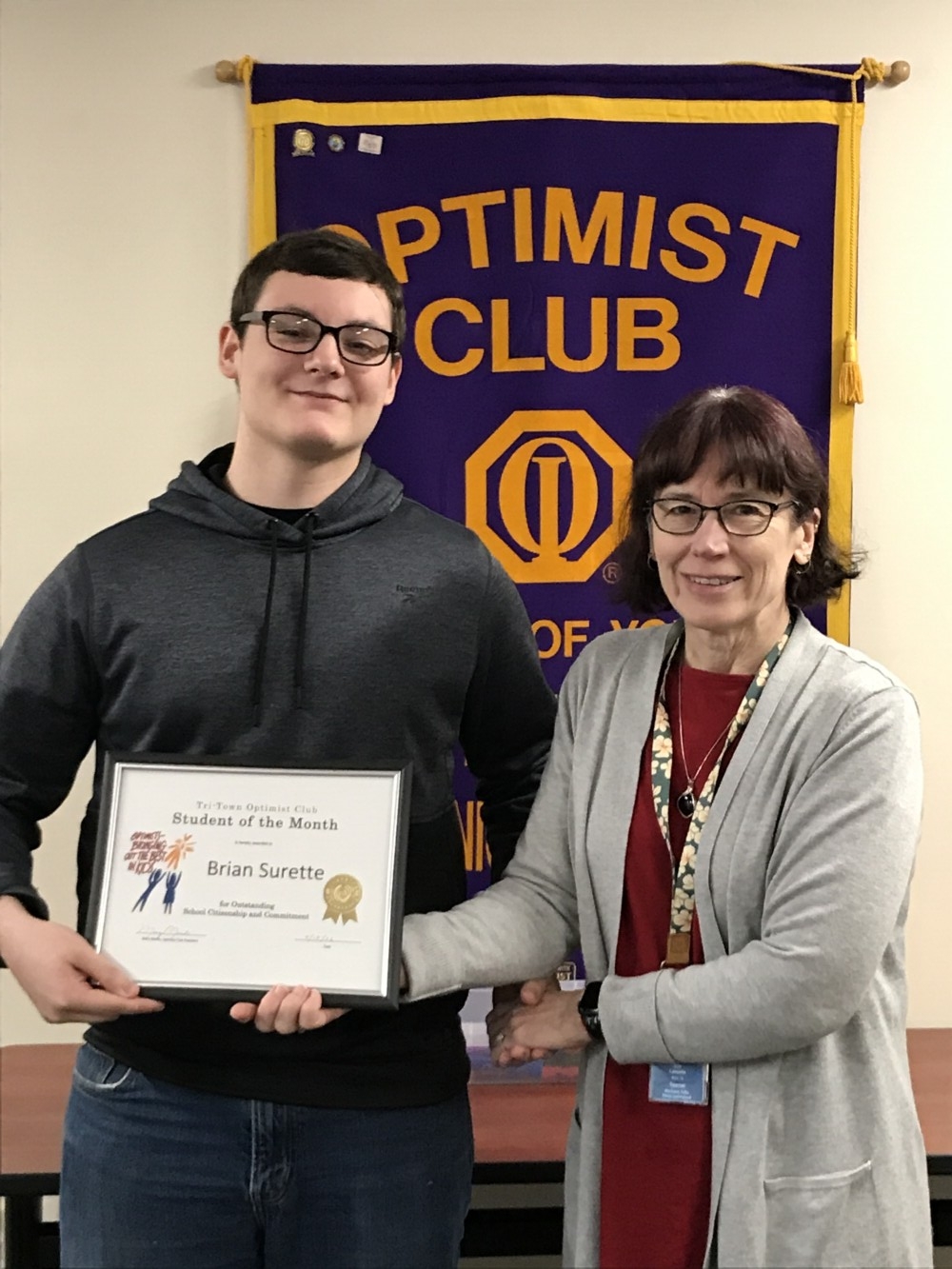 MECHANIC FALLS — Regional School Unit 16 Adult Education student Brian Surette was recognized as the Tri-Town Optimist Club student of the month for April.
