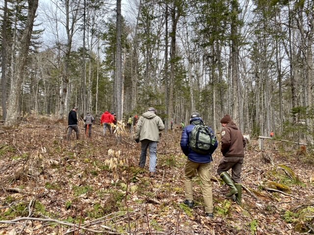 The Rangeley Lakes Heritage Trust (RLHT) recently hosted a Forest Stewards Guild field tour on April 29, 2022. The Forest Stewards Guild practices, advocates, and promotes responsible forest management to sustain the integrity of forest ecosystems and the human communities dependent upon them. Regional foresters, wildlife biologists, landowners, and stewardship professionals gathered at the RLHT’s Forest Legacy property to observe and discuss northern hardwood management. Tours, such as this, are an excellent opportunity for experts to collaborate and share ideas to address the complex issues our forests face today. Managers strive to promote ecological diversity, forest stand health, structure, and resiliency in the face of a changing climate by using exceptional forest management techniques. Maines Acadian forests also have the potential to sequester significant quantities of carbon to offset global emissions.