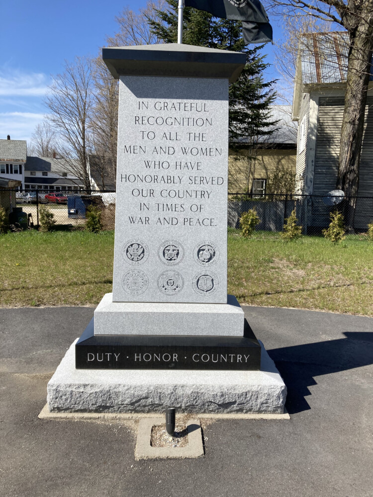 Organizers approached Bruce Collette at Collette Monuments in Lewiston and he pulled together a design that the committee approved. The original project was supposed to be at the Fire Station on Mill Hill Road, and Collette fit the design to that space.