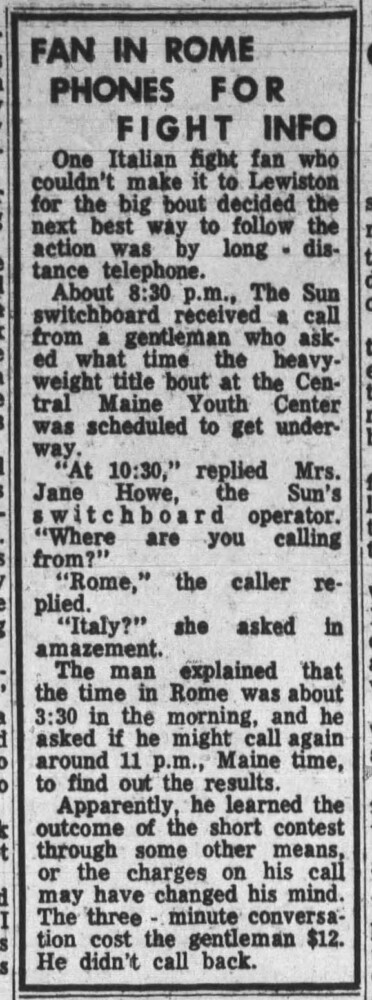 Editor’s note: This story, originally published in the Lewiston Evening Journal on May 26, 1965, was edited to correct a few misspellings.