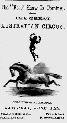 On Saturday night on June 11, 1870, The Great Australian Circus, one of many traveling shows that crisscrossed the country in those days, came to town. Under a waterproof pavilion, it promised “never-failing amusement and entertainment,” with new costumes, beautiful horses and educated mules.