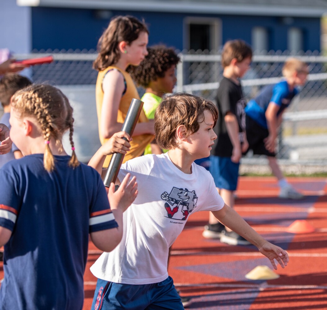 Finn Shapiro, 6, runs in a relay on May 31 with the Lewiston Recreation Track & Field Program. Shapiro’s father, Jack, volunteers with the program and says he loves to watch the children running and being active outdoors. “I ran track all through college,” Jack Shapiro says. “One of my kids is following in my footsteps.” Andree Kehn/Sun Journal