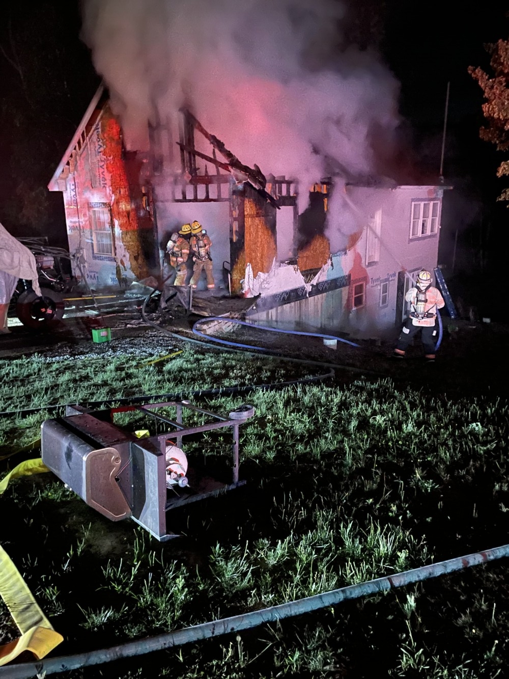 The first firefighters on scene reported that the home was engulfed by flames. Firefighters were called from Oxford, Minot and other towns to assist.