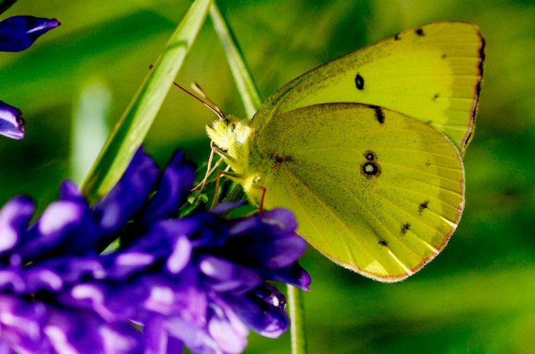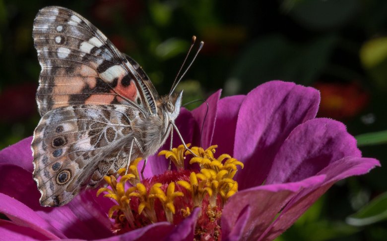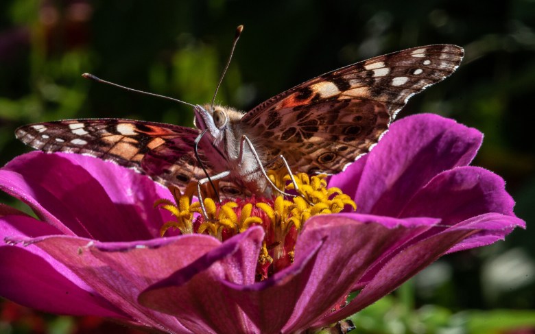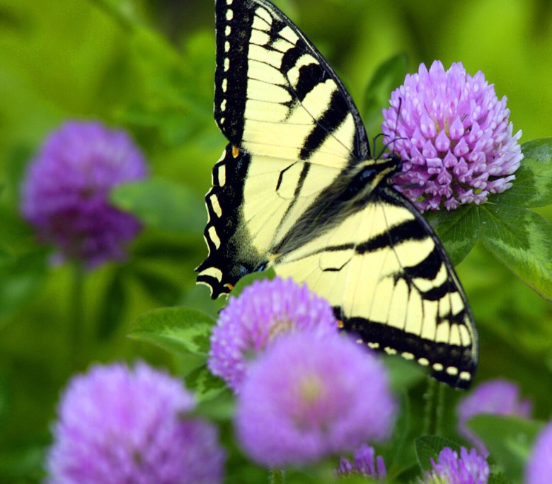 A Swallowtail butterfly feeds on nectar in Hallowell. The colorful insects also spread pollen collected from flowers, helping seed a variety of different species.