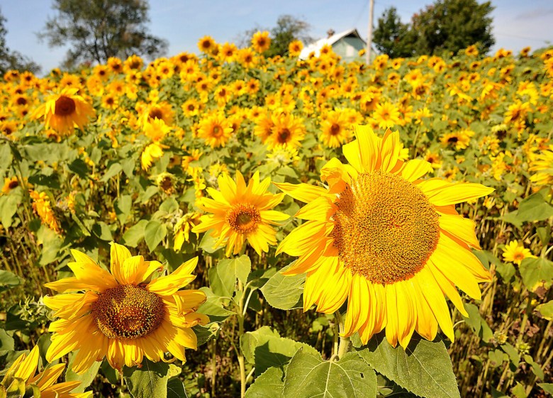 DAYTON, ME - SEPTEMBER 2: Joe and Mary Caruso walk through a field of sunflowers at Pumpkin Valley Farm in Dayton on Monday, September 2, 2019. Monday was the last day of a four-day sunflower festival at the farm, which also has a corn maze designed in the pattern of a sunflower. (Staff photo by Gregory Rec/Staff Photographer)