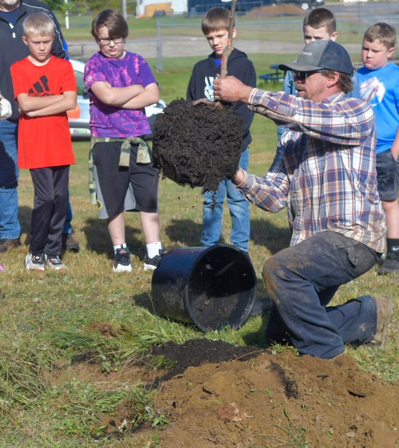 With his co-project manager, Shelley Kruzewski, Hodges demonstrated the correct way to dig a hole, explained the process of planting a tree and spoke of the legacy the students will leave through their hard work.