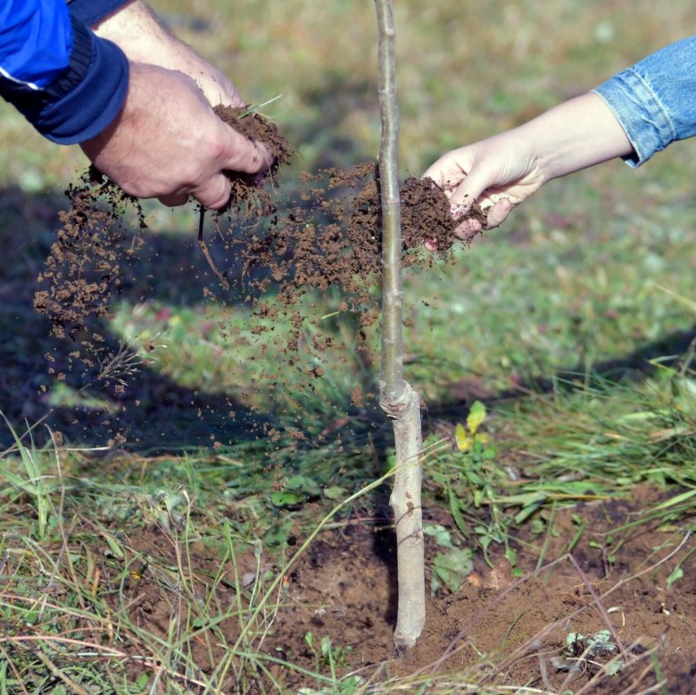 Hodge also explained that fruit trees are usually maintained in the spring and harvested in the fall. The sapling-size trees planted Thursday are expected to take four to five years to fully mature and bear fruit.