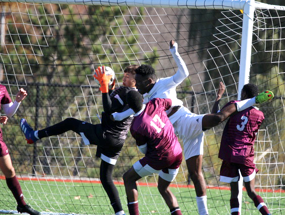 Edward Little’s best chance came with 21 minutes left when defender Caleb Albert’s free kick from far out went high toward a leaping Goyette, who secured the save.