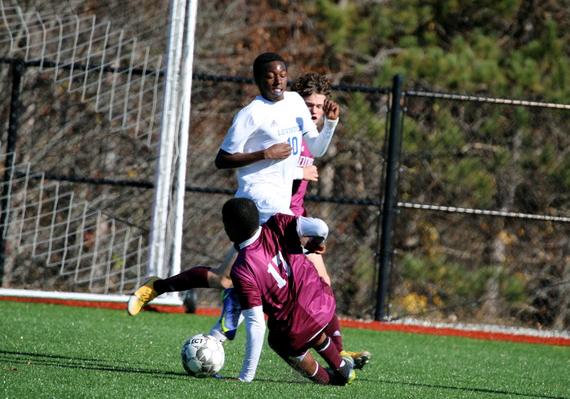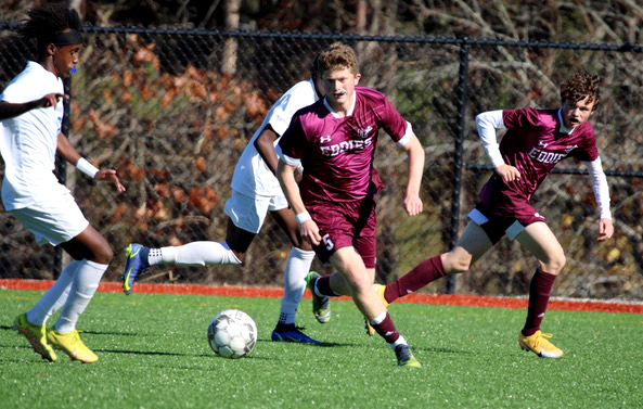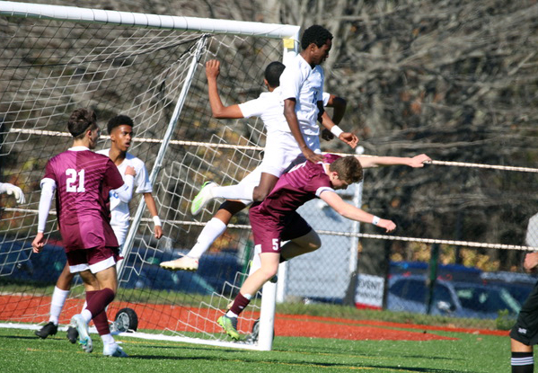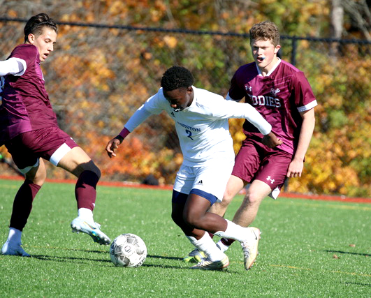 The Lewiston defense made three defensive saves with 13 minutes left in the half, first stopping Jack Thompson, then Mohamed Adow before a Blue Devils defender headed away the third attempt.
