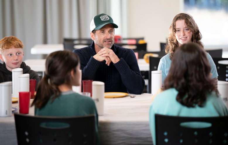 SACO — Days after driving a race car through northern Italy for the upcoming film “Ferrari,” Patrick Dempsey was back in Maine, picking kale and having lunch with local students.