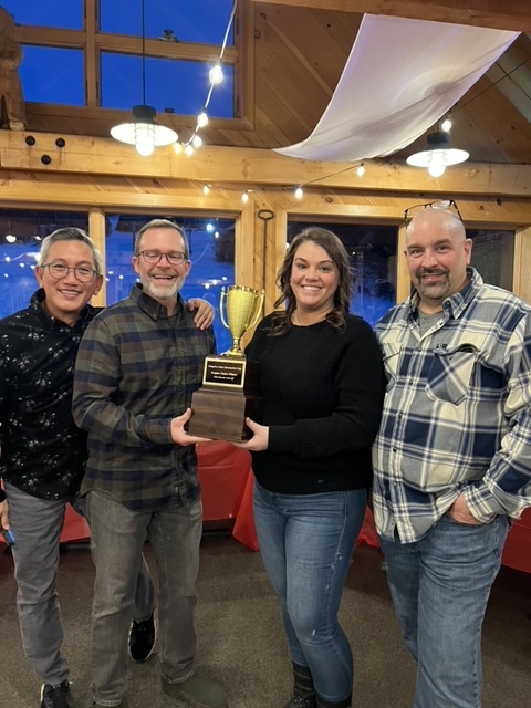 March 25th Rangeley Lakes Snowmobile Club auction held at Moose Alley included “Penny”, Silent and a Live Auction raising much needed funds. Thank you! Faye ZukowskiClarkie’s Annual Pig Roast had a ton of happy tubers in between live music and the annual feast which served 420 meals with all proceeds going to the RLSC Groomer Barn. Seen here Sarah Ash and Marley Cerminara winter smiling. Congratulations to Rangeley resident and snowbird Mick Guyette who won 1st place in the Men’s Division in the California District 5 Shuffle Board Championship. Ashley Quimby of RLSC presents award to Rangeley Inn for winning “People’s choice” Chili and “Under the Sea” Chowder at the RLSC Chili Chowder Competition. <i></i> Faye Zukowski