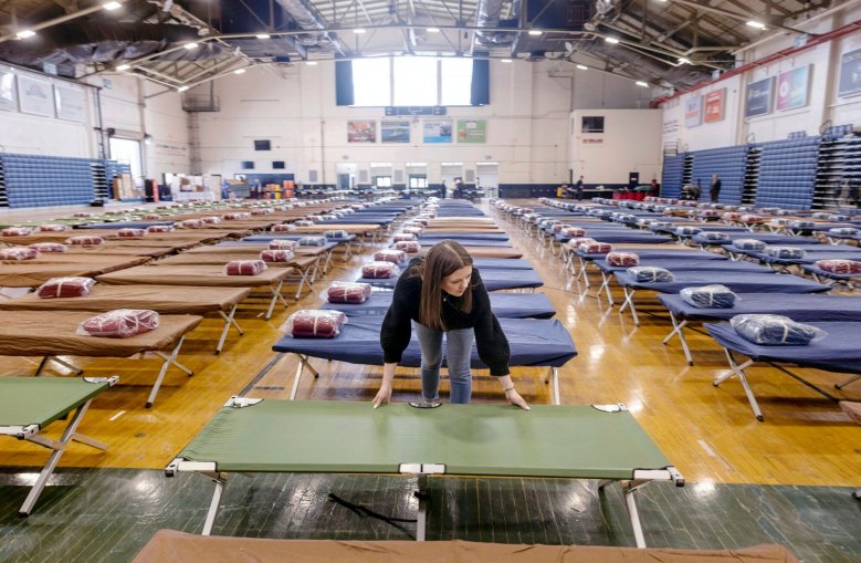 Nearly 300 people were expected to move into the city-owned sports arena, and cots were set up on the gymnasium floor where the Maine Celtics play.