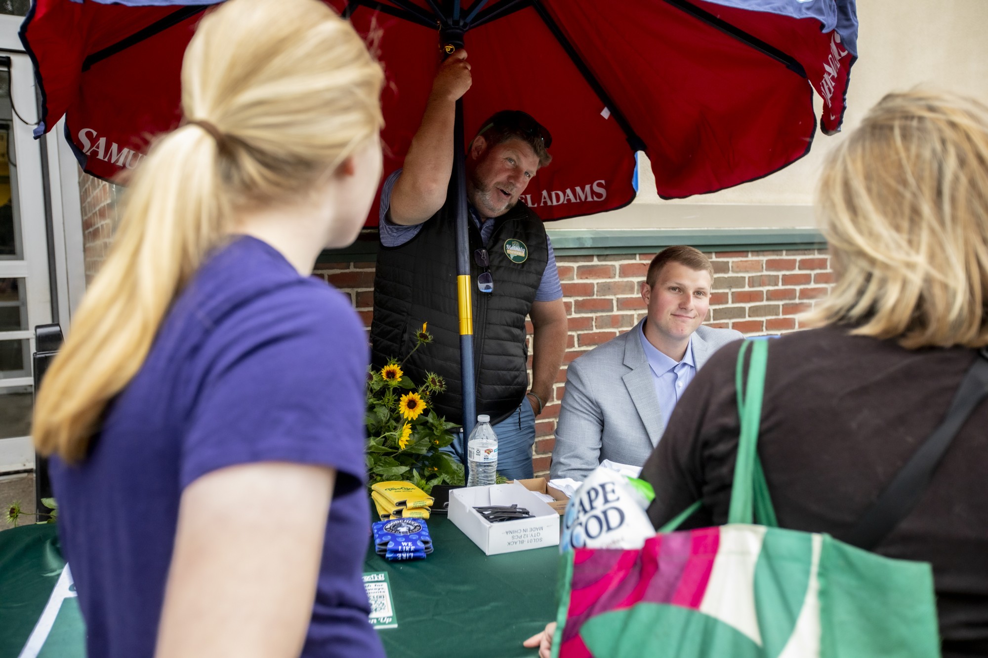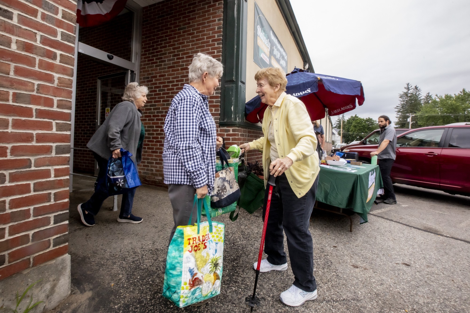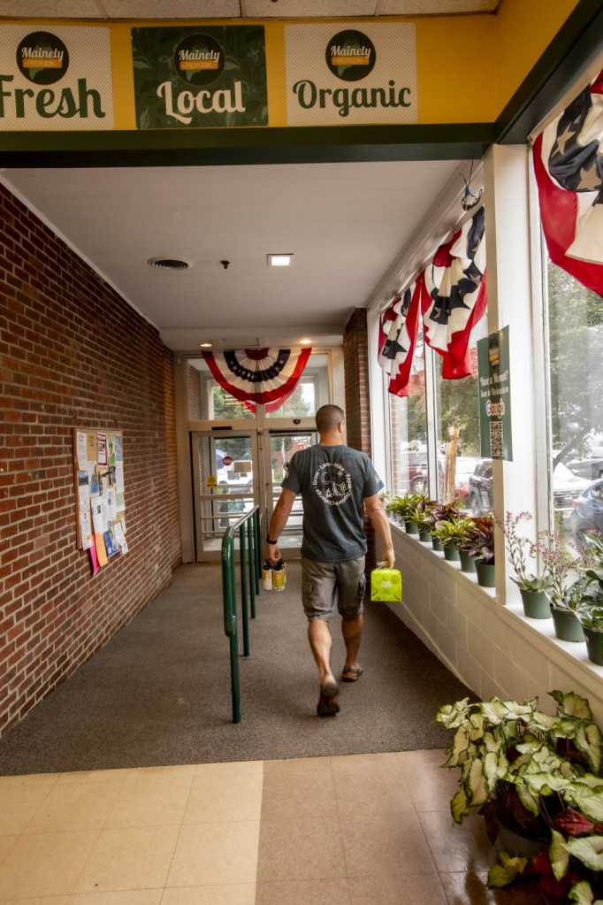 The entrance at Mainely Provisions. Rose LincolnKathleen DeVore, left and Mary Haberman both of Bethel greeted each other with a hearty hug outside Mainely Provisions. They hadn’t seen each other for a week! Rose LincolnMainely Provisions owner, Joe Christopher, left, and his nephew, Ben Christopher, store manager, greet customers at the grand opening of the store on Friday, July 21. Rose Lincoln