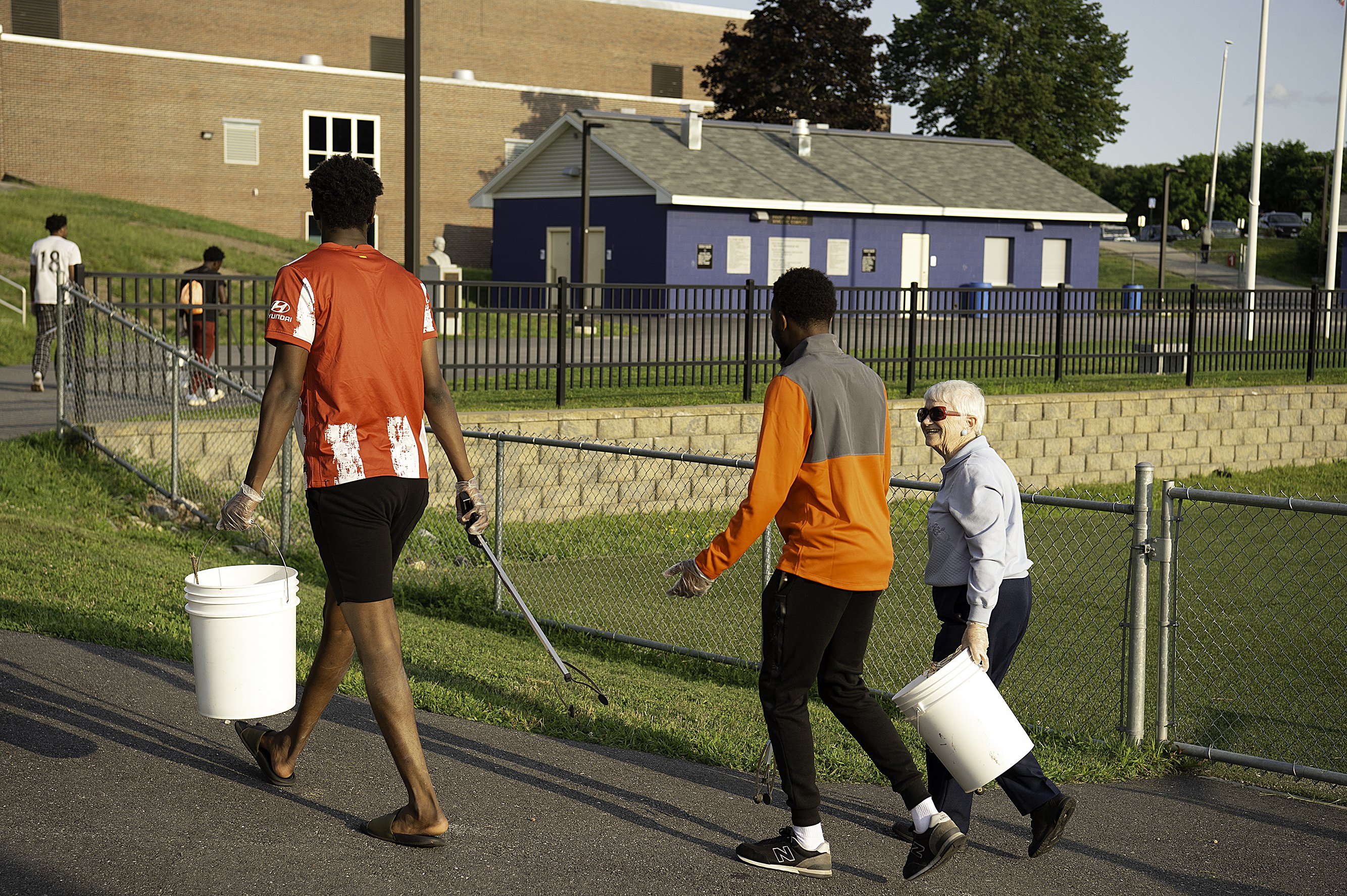 Volunteer coach Justin Bragdon prepares his team to compete Aug. 3 during the youth track and field meet at Lewiston High School. Bragdon helps the Lewiston Recreation track & field program, one of five teams to compete during the qualifier for the state championships, which are scheduled for next Saturday at Cony High School in Augusta. Daryn Slover/Sun JournalMuna Ali, left, and Samaya Mohamed stand July 31 on Knox Street in Lewiston, where two men were fatally shot a day earlier. “Yesterday was a very sad day,” Ali says, adding that both victims were friends of her brothers. Adds Mohamed, “I hope it never happens again.” Daryn Slover/Sun JournalBecca Phelps holds her son, Allister, and cups, saucers and more July 29 as her daughter Louna, right, selects more items for the tea set she is collecting at the Androscoggin Grange No. 8 in Greene. The family is shopping at the first yard sale and bake sale fundraiser to help fund renovations to the building. Russ Dillingham/Sun JournalLia Miniutti and her horse, Jazz, relax as they wait for their turn during the July 30 show jumping competition at Sassy Strides Equestrian in Lisbon. Several dozen people take part in the New England Jumpers Association Summer Hunter/Jumper Festival II event. Ribbons are awarded in various age and skill levels. Russ Dillingham/Sun JournalCynthia Peters talks with Abdilahi Abdi while helping to pick up trash Aug. 2 at the Franklin Athletic Complex in Lewiston. Megan Bates of the Lewiston Public Works Department and Nicole Welch of Lewiston Recreation organized a community gathering to gauge interest in forming a Friends of Franklin Pasture group, or FOFP, that would help maintain and keep an eye on the athletic fields at Lewiston High School. Vandalism at the complex has prompted discussion on limiting field usage to only school athletic teams, and closing the fields to the public. More than 30 people participated in the Aug. 2 cleanup and showed interest in forming FOFP to keep the fields open to the public. “I am very excited about the turnout,” Welch says. Information from the event is scheduled to be shared Aug. 15 with the Lewiston City Council. Daryn Slover/Sun JournalDexter Morin, left, helps Zane Deletetsky tune Deletetsky’s guitar Aug. 1 in a hallway at the Great Falls Performing Arts Center in Auburn during the 17th annual Camp of Rock. Both men are from Auburn. Daryn Slover/Sun JournalA great golden digger wasp lands Aug. 4 on a hydrangea on Whitney Street in Auburn. Russ Dillingham/Sun Journal