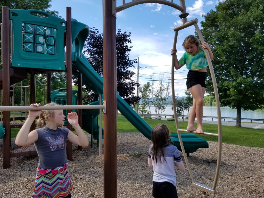 Ava LaPointe, 7, of Lewiston hangs upside down on playground equipment Tuesday while her cousins Roweynn Locke, 7, of Chesterville, center, and Rhylee Locke, 9, play with her at Bass Park in Wilton. Donna M. Perry/Sun JournalRoewynn Locke, 7, of Chesterville plays on the jungle gym Tuesday at Bass Park in Wilton. Locke was joined at the playground by her sister Rhylee Locke, 9, and cousin Ava LaPointe, 7, of Lewiston, who are not shown. Donna M. Perry/Sun JournalRhylee Locke, 9, right, her cousin Ava LaPointe, 7, of Lewiston, center, and sister Roewynn Locke, 7, of Chesterville enjoy the playground Tuesday at Bass Park in Wilton. Donna M. Perry/Sun Journal