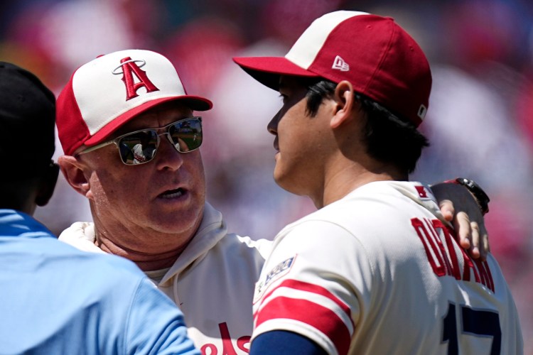 ANAHEIM, Calif. — Shohei Ohtani hit his major league-leading 44th homer in the first inning before he abruptly left the mound in the second due to arm fatigue during the Los Angeles Angels’ 9-4 loss to the Cincinnati Reds on Wednesday in the first game of a doubleheader.