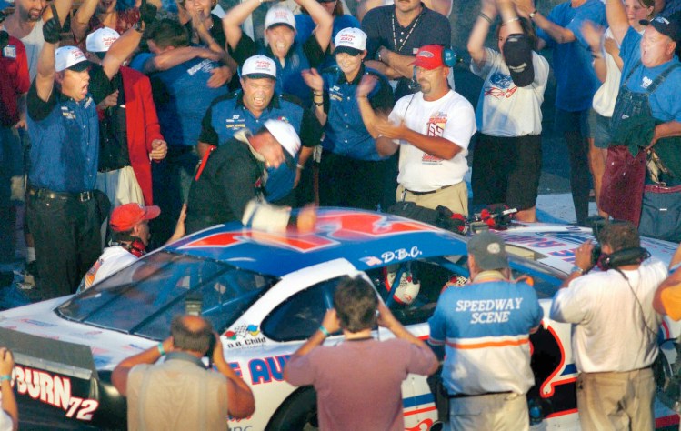 To make the 250, Rowe had to win a consolation race. He started 26th. Tracy Gordon of Strong arrived at Oxford Plains Speedway right before introductions because he raced in a NASCAR Busch North Series race in New York earlier in the day, then chartered a flight to the Oxford airfield behind the track. His stepbrother, and future 250 winner, Glen Luce qualified Gordon’s car. Gordon drove it to a second-place finish. Maine drivers occupied the top 11 finishing positions.