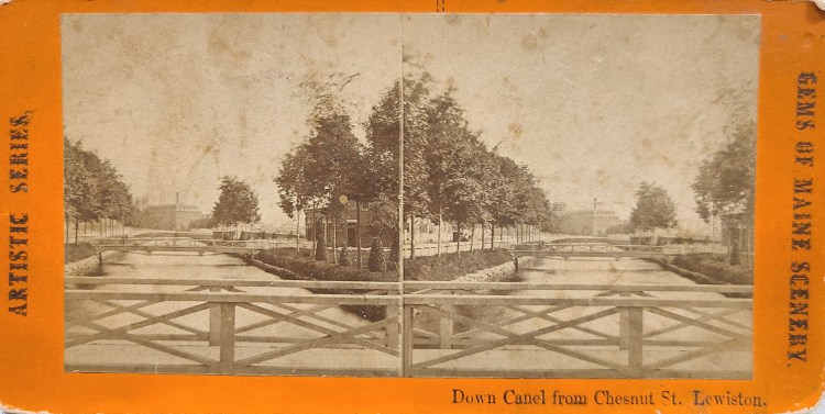 In 1866, the Lewiston Evening Journal noted that a Bangor photographer named S.W. Sawyer “has taken a number of stereoscopic views of the Falls at this place, which make some of the finest pictures we have seen for many a day.”