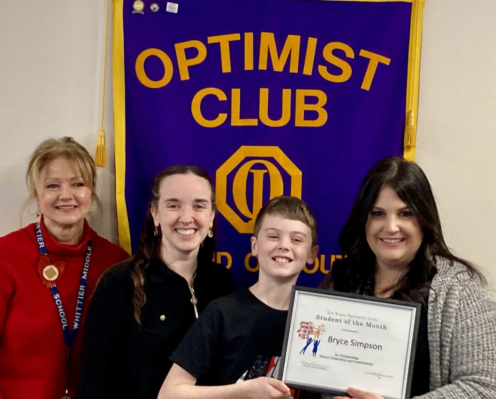 The Tri-Town Optimist Club of Mechanic Falls, Minot and Poland has announced its latest Regional School Unit 16 student of the month for November: sixth grader Bryce Simpson of Minot, a student at Minot Consolidated School.