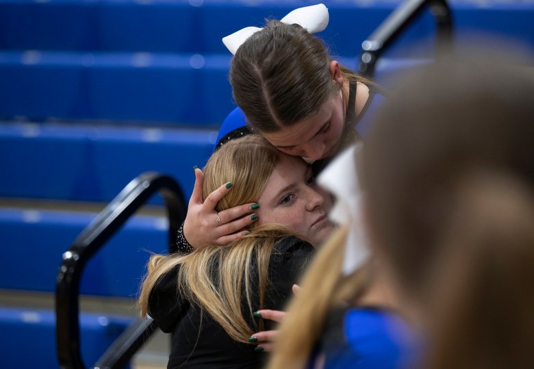 They wiped away their tears, and soon the gym was filled with the squeaks and thumps and cheers of the game, the soundtrack of winter in a basketball town.