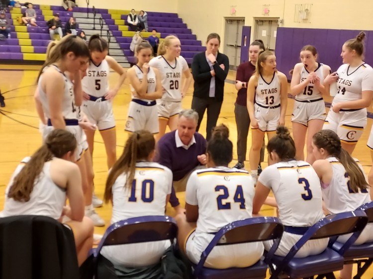 The Stags, who committed an uncharacteristic amount of turnovers in the first half, took much better care of the ball in the third quarter and thanks to 3-point shots from sophomore Rachel LaSalle, Fitzpatrick and freshman Abby Kelly, went on a 10-0 run to seize the lead and when Fitzpatrick sank another 3 late, Cheverus was on top, 48-40, heading to the fourth period.