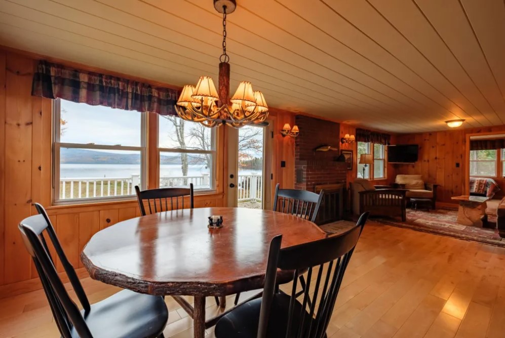 Located on a point, facing southwest with loads of sunshine and beautiful lake frontage, enjoy this 2 bedroom, 2 bath home complete with a fireplace and large deck overlooking Rangeley Lake.