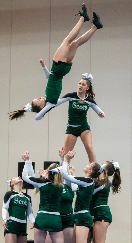 “We (had to replace) one of our flyers, so it was challenging, but we did a good job,” said Erskine’s Hailey Fongemie, whose team won last year’s Kennebec Valley Athletic Conference Class B title. “We worked hard, and it feels good.”