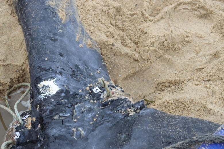 With the loss of that 170-foot trail of rope, researchers and rescuers were left with watching 5120 gradually deteriorate through pictures captured during different sightings. When her carcass washed up on the beach, it was clear the entanglement had taken a toll.