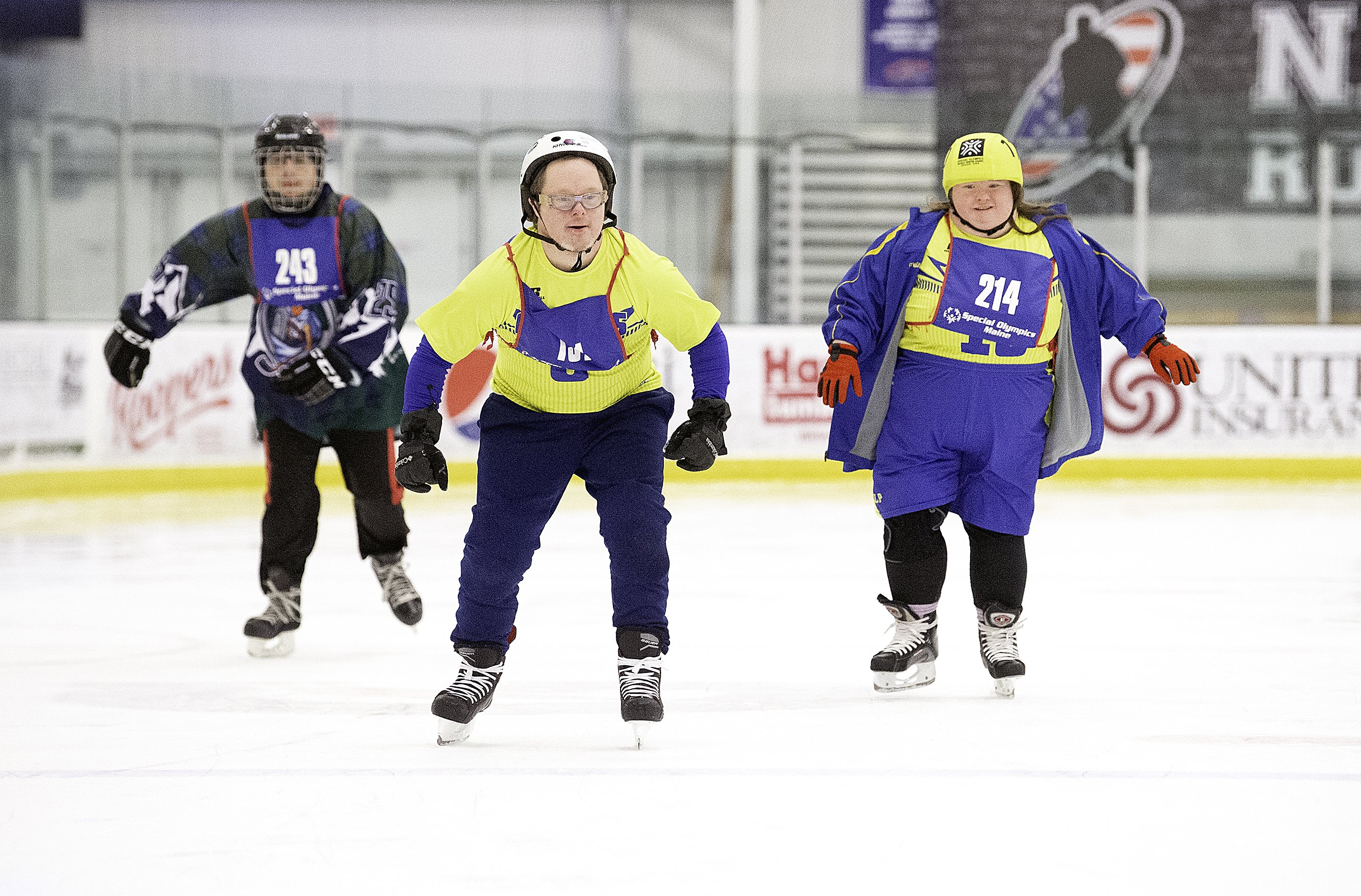 Christian Joliat, center, of Unity gets ready with his teammates Wednesday prior to the start of the Special Olympics Maine speed skating at Norway Savings Bank Arena in Auburn. Daryn Slover/Sun JournalCailynn Goss of Hampden gets ready Wednesday for the Special Olympics Maine speed skating at Norway Savings Bank Arena in Auburn. Daryn Slover/Sun JournalKaren Schilling of Portland cheers for an athlete during Wednesday’s Special Olympics Maine speed skating at Norway Savings Bank Arena in Auburn. Schilling is the head coach of Great Atlantic Speedskating based in Falmouth. She is a volunteer during the two-day Special Olympic games. Daryn Slover/Sun JournalBrandon Mullen of Lewiston participates Wednesday during the Special Olympics Maine speed skating at Norway Savings Bank Arena in Auburn. Daryn Slover/Sun JournalFans watch athletes skate laps Wednesday around Norway Savings Bank Arena during the Special Olympics Maine speed skating in Auburn. Daryn Slover/Sun JournalCaitlyn Gunn, left, of Bangor and Peter Mahoney of Winslow leave the starting line Wednesday during the Special Olympics Maine speed skating at Norway Savings Bank Arena in Auburn. Teams of athletes from across the state are participating in the two-day annual Winter Games Wednesday and Thursday in alpine skiing, cross country skiing and speed skating. The games are being held at Lost Valley in Auburn, Pineland Farms in New Gloucester and at the Auburn ice rink. Daryn Slover/Sun JournalBrendan Hickey of Portland gives high-fives Wednesday during the Special Olympics Maine speed skating at Norway Savings Bank Arena in Auburn. Hickey has been the director of speed skating for Special Olympics Maine for 35 years. Daryn Slover/Sun JournalStephen Costello, center, of Orono, Caitlyn Gunn, right, of Bangor and an unidentified athlete compete Wednesday during the Special Olympics Maine speed skating at Norway Savings Bank Arena in Auburn. Teams of athletes from across the state are participating in the two-day annual Winter Games Wednesday and Thursday in alpine skiing, cross country skiing and speed skating. The games are being held at Lost Valley in Auburn, Pineland Farms in New Gloucester and at the Auburn ice rink. Daryn Slover/Sun Journal